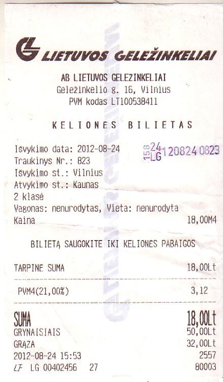 Билет на электропоезд-экспресс Вильнюс — Каунас.