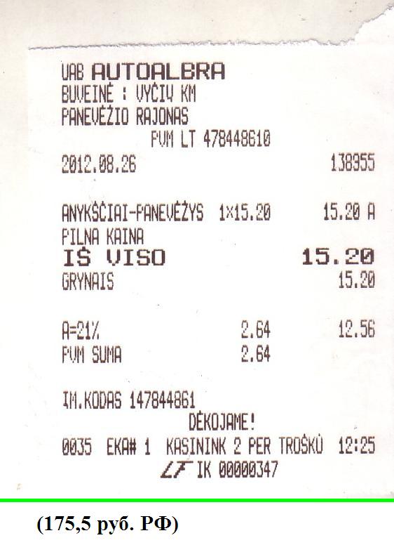 В обменном пункте на вокзале меняю 1000 рублей на литы. Здесь курс был приемлемый (в обменном пункте на границе — грабительский). Отмечу, что обмен денег может составлять серьёзную проблему: вечером и по выходным дням это зачастую невозможно.
