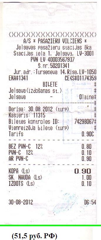 Билет на «маршрутку» Баложи — Рига.