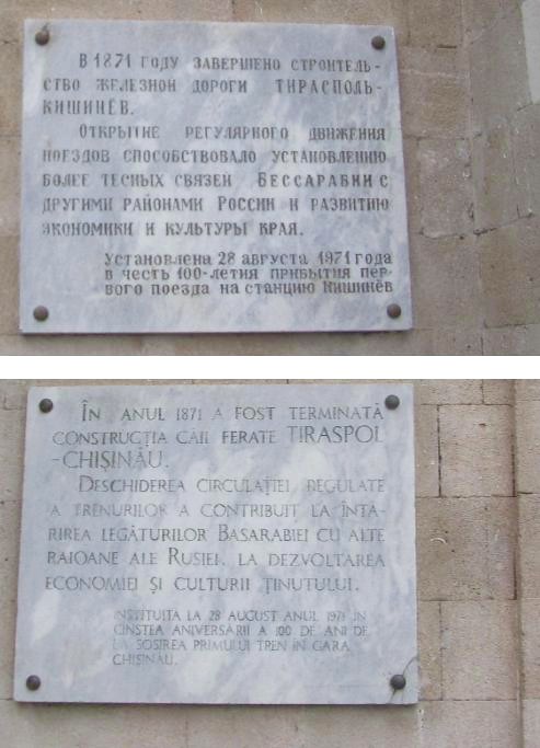 Мемориальные доски на здании вокзала в Кишинёве. Румыноязычная версия