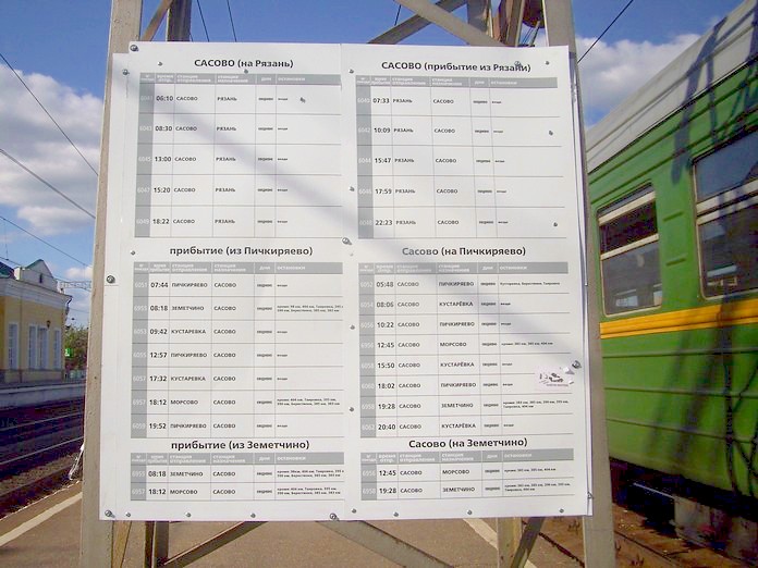 Расписание движения поезда Сасово — Земетчино, вывешенное в вагоне.