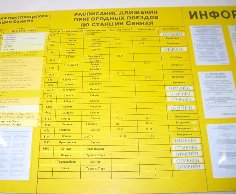 Расписание по станции Сенная. Пригородное движение «убито» почти полностью.