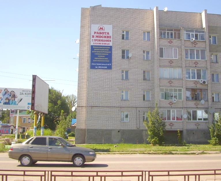 Реклама на улице города Балашова. Рабочая сила со всей России «перетекает» в Москву,