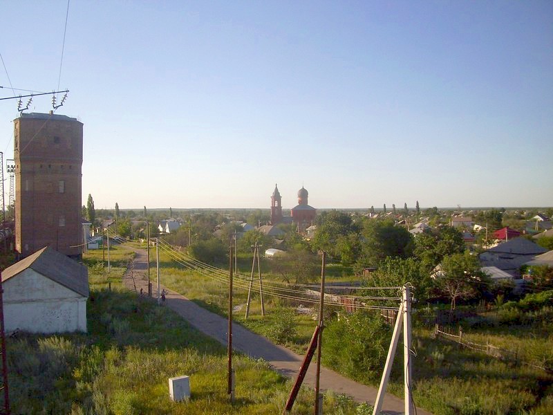 Станция Свеженькая. Вид на север. Полусгоревшая водонапорная башня.