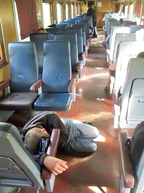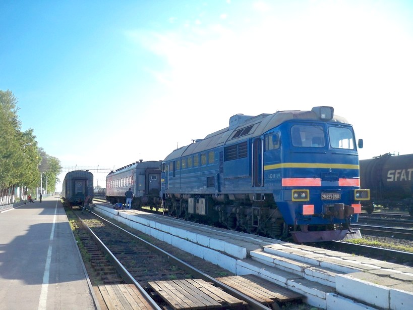 Как обычно, поезд состоит из тепловоза ТЭП70 и «межобластных» пассажирских вагонов. Посадка в один вагон. Спокойному сну вначале мешали какие-то маргиналы с удочками. Они исторгали из себя громкий разговор с обильным матом.