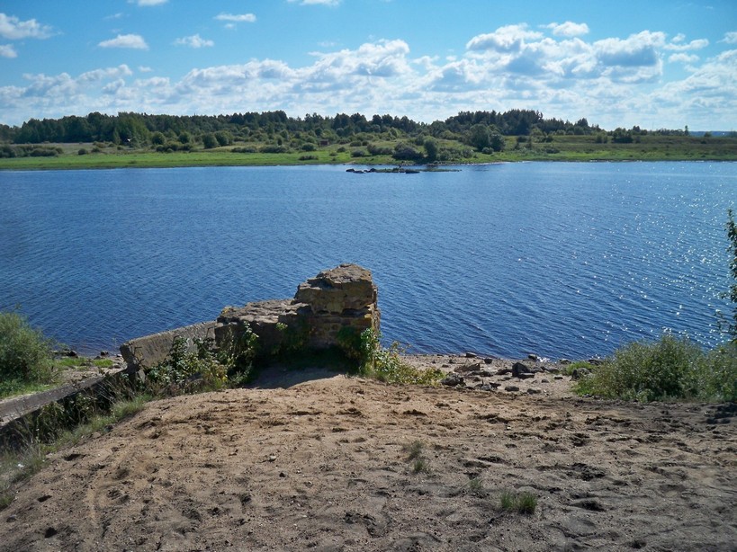 У насыпи разобранной железной дороги есть отгороженный от основного русла реки затон. Здесь я купаюсь. Затем осматриваю бывший железнодорожный мост. От него остались лишь фрагменты береговых устоев.