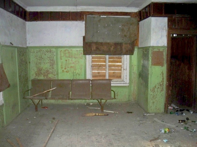 Сегодня предстоит впервые зайти в «избушку» с фотоаппаратом. Я успел вовремя! Здание заброшено приблизительно с 2006 года. Теперь для пассажиров отвели небольшой уголок в служебном строении у платформы. Старому вокзалу осталось стоять недолго: его либо снесут, либо сожгут.