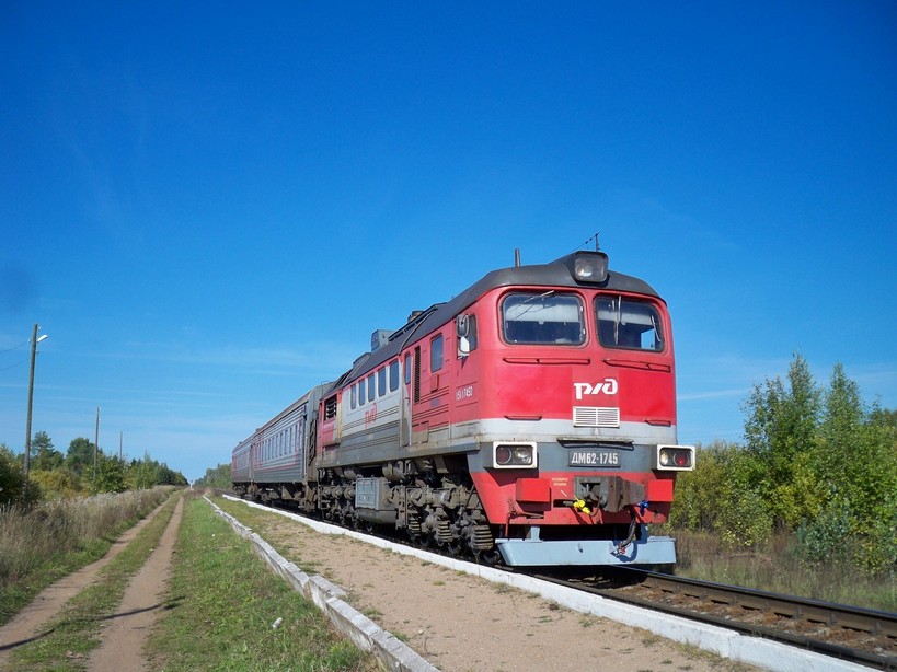 Тепловоз ДМ62-1785, 1 пассажирский вагон.