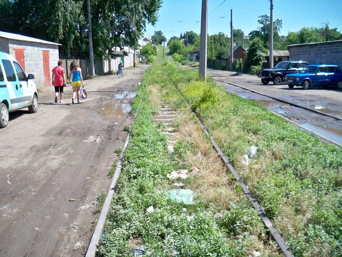 В Донецке иду от вокзала в северном направлении по трамвайной линии, затем пересекаю железнодорожные пути.