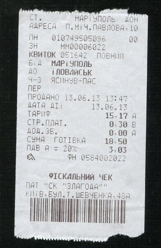 Билет Донецк — Мариуполь.