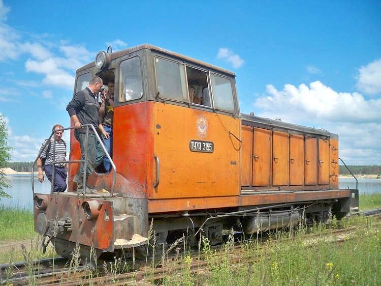 Тепловоз ТУ7А-3155 с участниками экскурсии на Красногорском карьере.