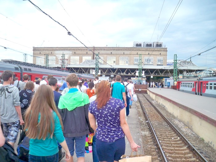 Прибыли на Ленинградский вокзал! Поездка в электропоезде, к большому облегчению, закончилась. Спускаюсь бегом в метро, пытаясь разогнать толпу.