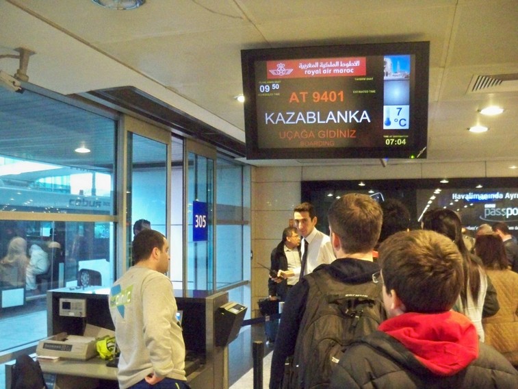 Перелёт продолжительный и изматывающий. Из-за пересадки лететь в Марокко дольше, чем в Америку. Но трёхчасовой полёт из Москвы в Константинополь (Стамбул) показался более трудным, чем пятичасовой полёт из Стамбула в Касабланку. Отчасти из-за темноты на участке Москва — Стамбул, отчасти из-за того, что на втором сегменте использовался дальнемагистральный самолёт с более комфортными условиями.