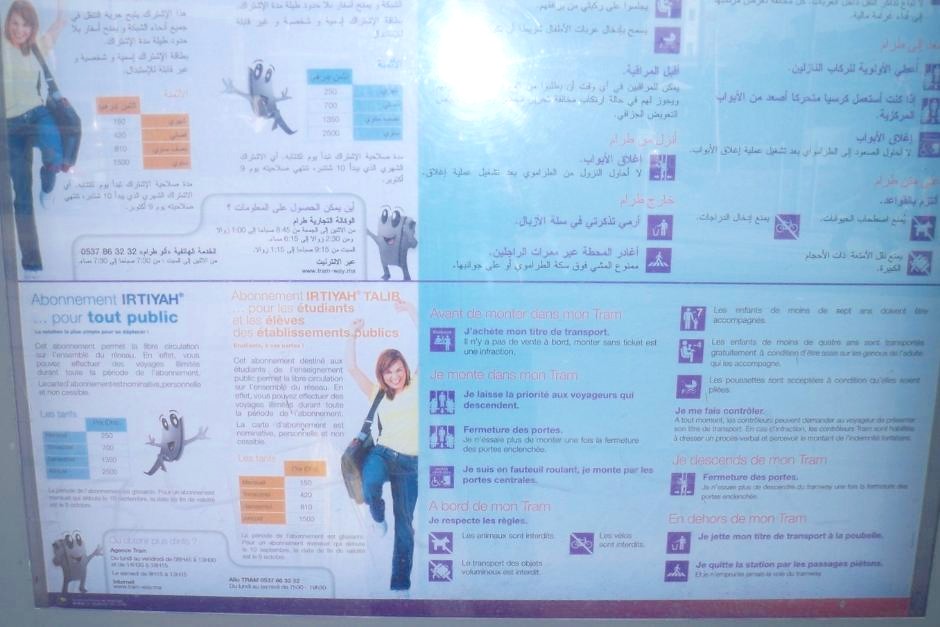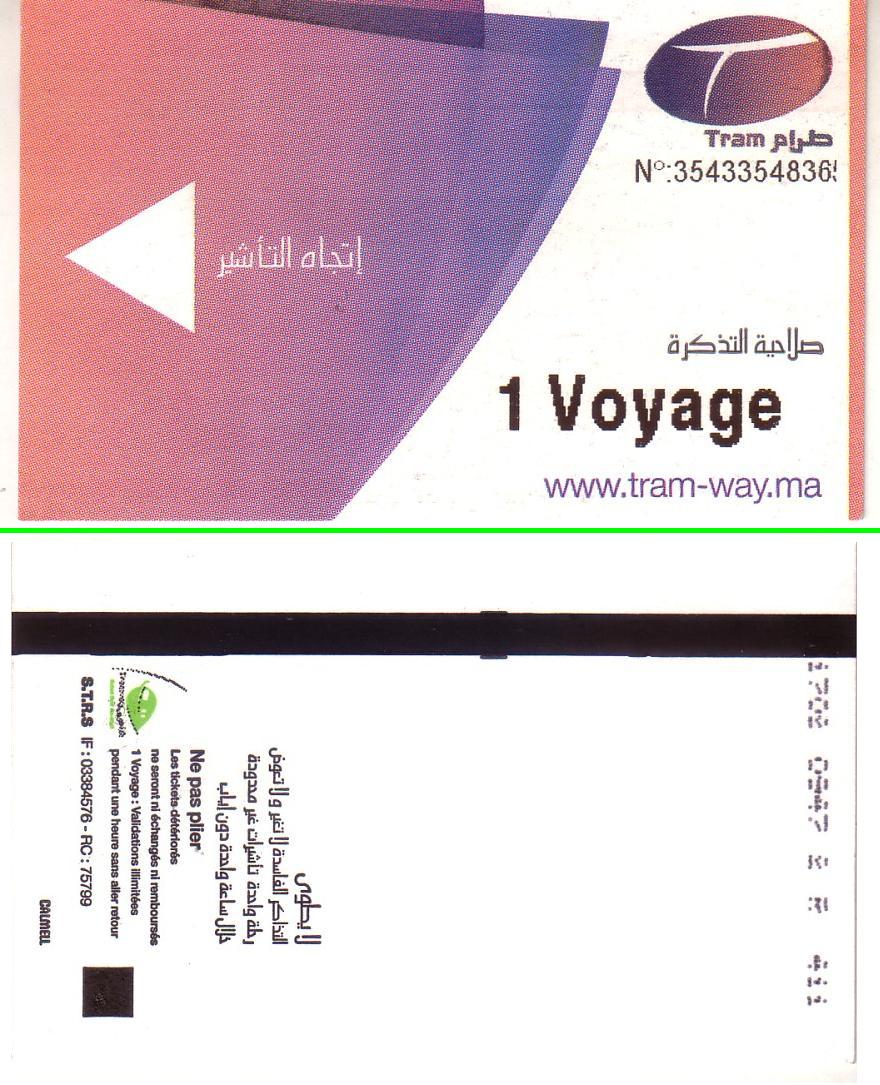 Внешний вид билетов, купленных в кассах и в автоматах, не отличается. Надписи — на французском и арабском. Несколько лет назад надписи в билетах были только на французском.
