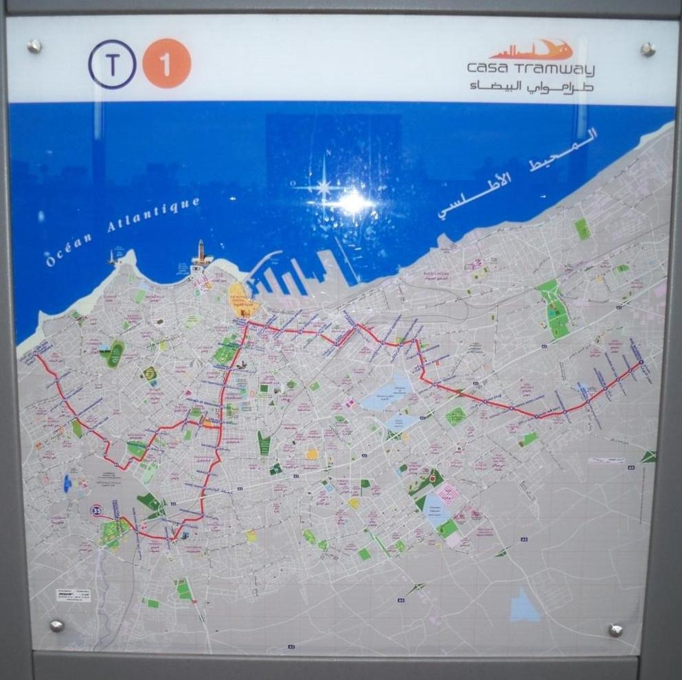 Схема трамвайной сети Касабланки, вывешенная на остановке «Facultés».
