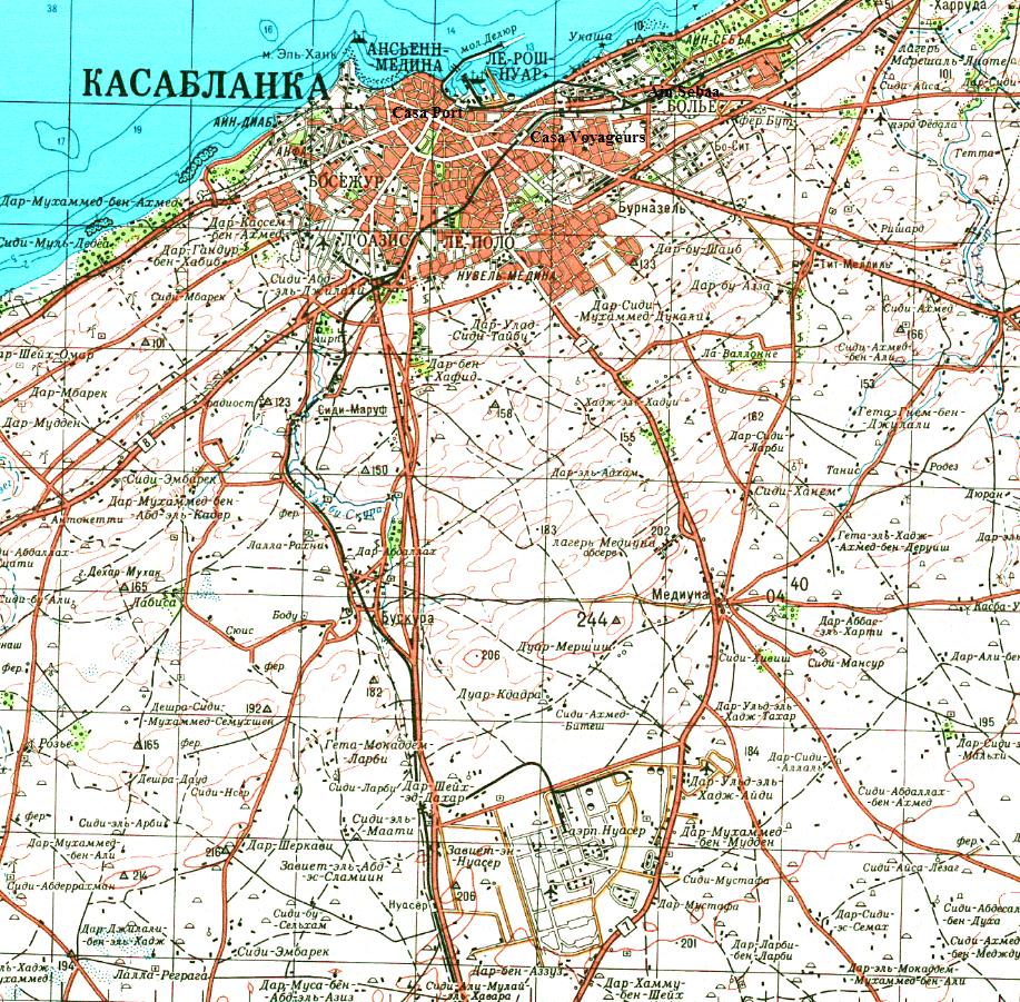Железная дорога в Касабланке на топографической карте масштаба 1:200 000, изданной в 1978 году.