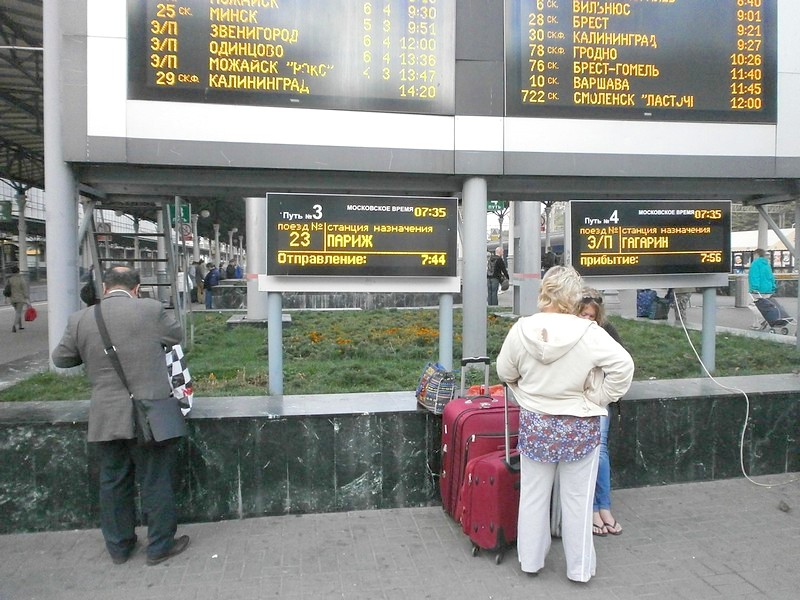 Станция Москва-Смоленская, Белорусский вокзал. Объявлен неординарный маршрут поезда! Время 7:38.
