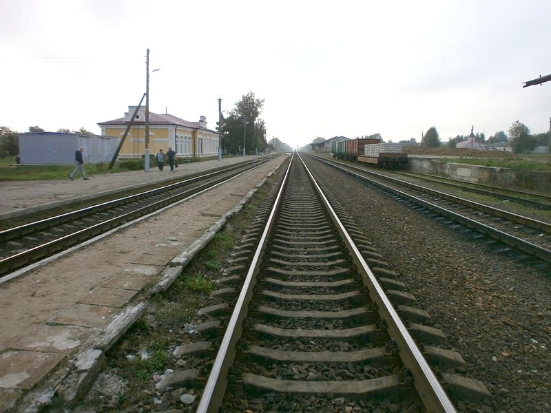 Вокзал на станции Гнёздово. Поезда следуют только в одном направлении.