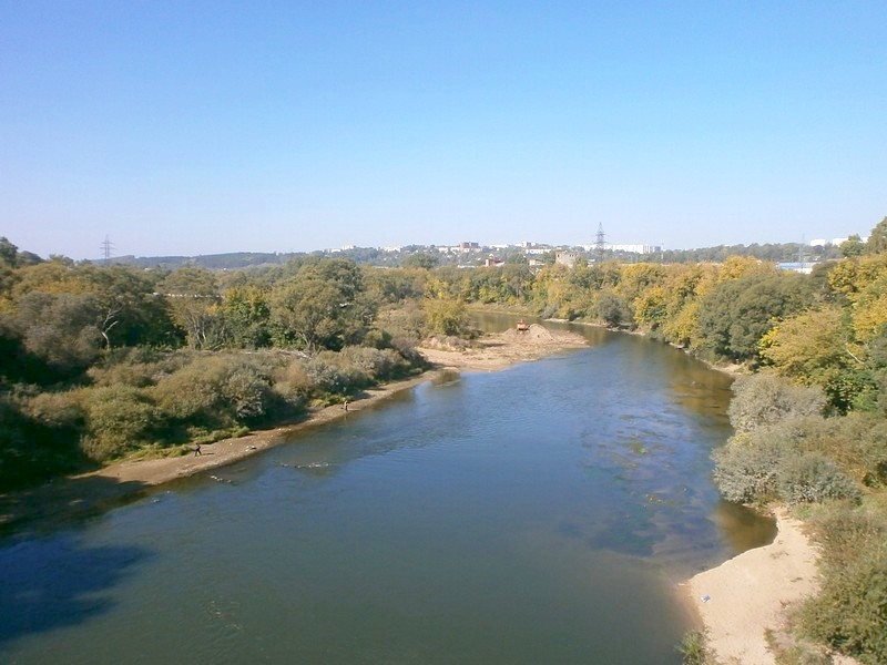 Река Днепр в Смоленске. Вид с Дзержинского моста вверх по течению.