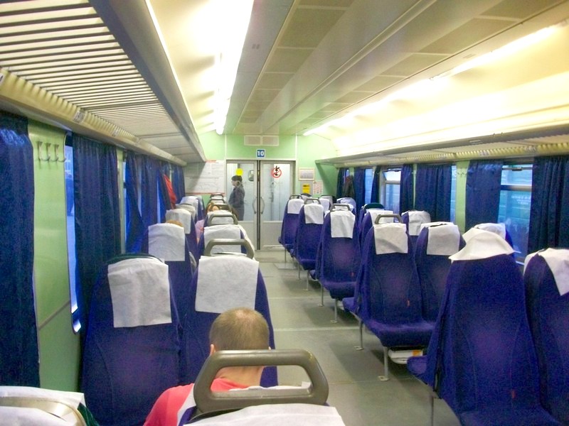 Ожидаемого нормального поезда не оказалось. В наличии оказался состав ЭТ2М-0138. Возможно, из-за каких-то технических проблем. Немалая досада. Все вагоны по внутреннему исполнению — стандартное «торжокское корыто». Такое внутреннее устройство вагонов, на мой взгляд, подлежит полному искоренению.