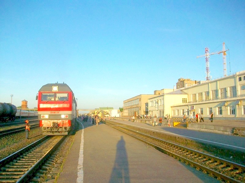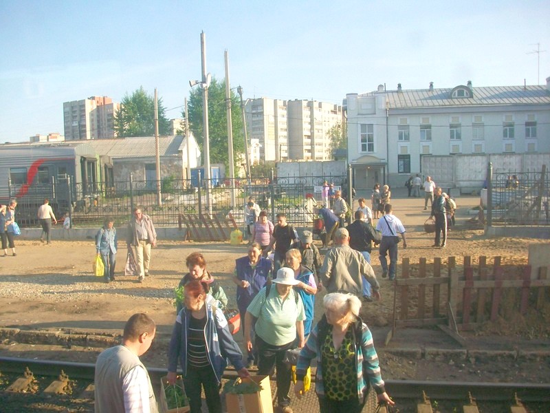 Станция Рыбинск. На пути у пригородного поезда Пищалкино — Ярославль находится крупный город,
