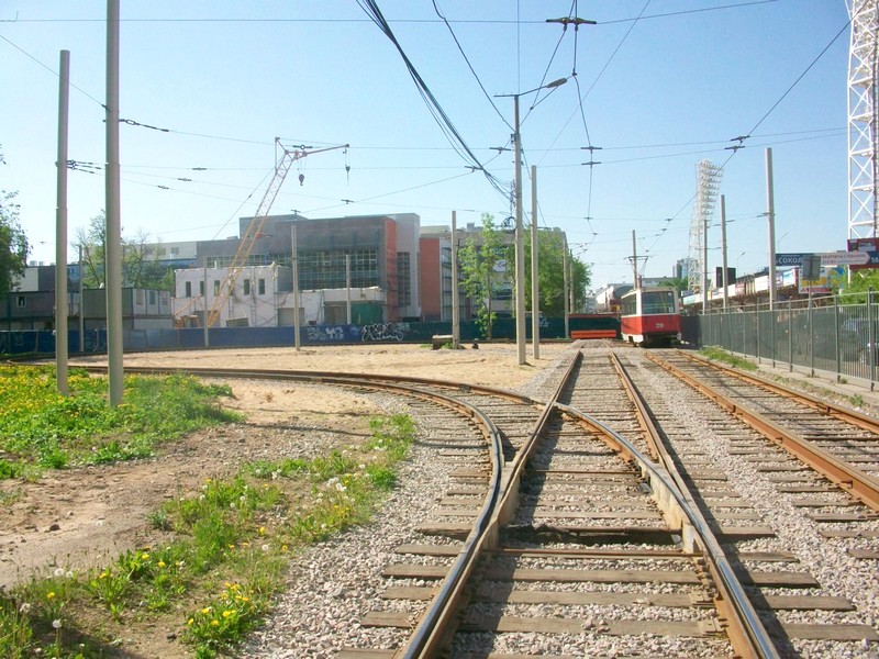 Вот так: в ходе абсолютно неприемлемого и преступного «погрома» трамвайных линий в центре Ярославля на ближайшем к центру пункте, до которого линию «пощадили», был построен треугольник. Использование треугольника для разворота вагонов — это редкость и экзотика, но это медленно и неудобно. Осознали данный факт только после открытия треугольника. Приняли решение заменить петлёй. И на петлю, и на треугольник потратили немалые деньги.