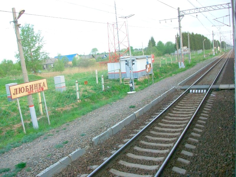 Станция Медведево остаётся позади. Вид на запад, в сторону Бологое.