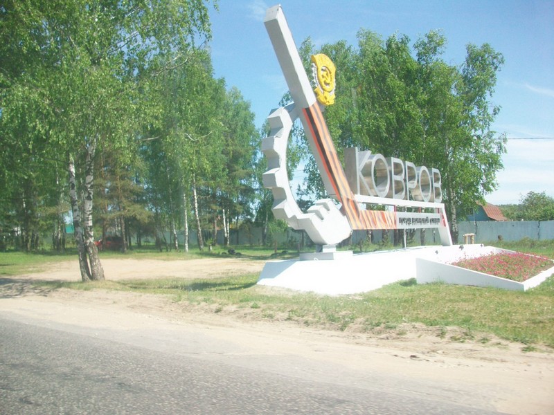 Движение на автобусе в Мелехово. Въездная композиция на въезде в город Ковров.