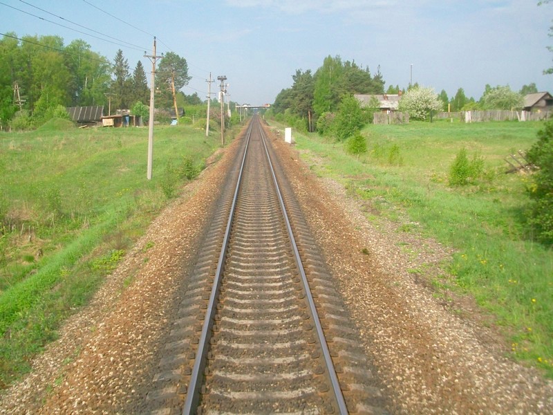 Поезд отправился со станции Медведево. Вид на запад, в сторону Бологое.