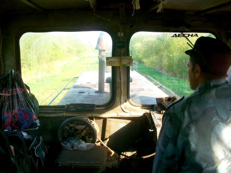 Я расположился в хвостовом вагоне рядом с нерабочим тамбуром. Но этот раз не удалось сделать ни одной фотографии линии из тамбура. На последнем ряду сидел «работник» ЧОП в камуфляжной форме. Его «работа», за которую он получает в несколько раз больше, чем реальные труженики на Мокеиха-Зыбинском торфопредприятии — ездить на поезде взад-вперёд в мягком кресле, зевать от скуки и не пускать меня в тамбур. Несмотря на объяснения, что курить не собираюсь!