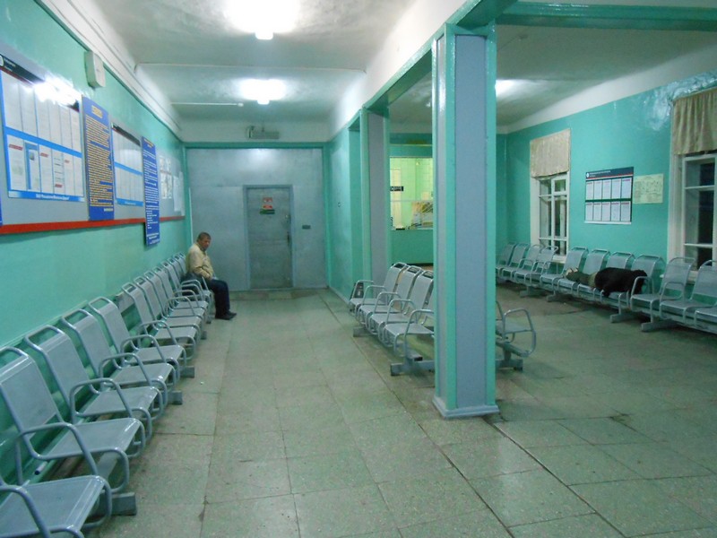 Внутри «будки» была настоящая толчея, в основном из мужиков сурового вида с большими сумками. И охранник, «наехавший» на меня за фотографирование. Он повёл «объясняться» к дежурной по вокзалу.