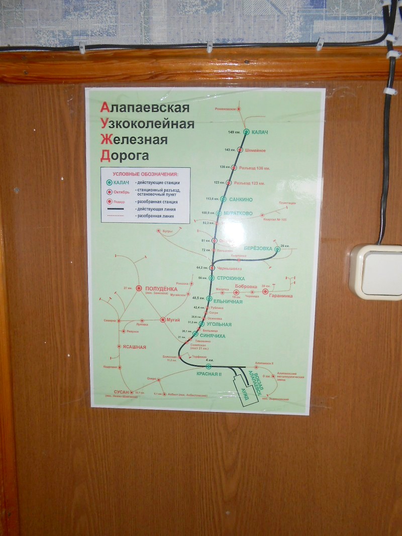 Схема Алапаевской узкоколейной железной дороги у дежурного по станции Ельничная.