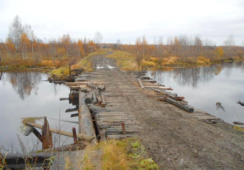 Выхожу к берегу реки Седеяхи, затем двигаюсь по мосту. Погода ухудшается. Идёт мокрый снег в сочетании с ветром.