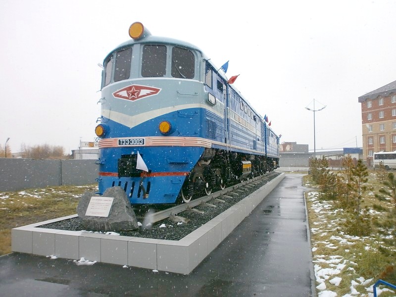 Станция Новый Уренгой. Действующий тепловоз ТЭ3-3790. Здесь — одна из немногих точек планеты,