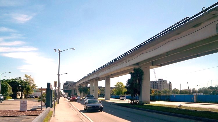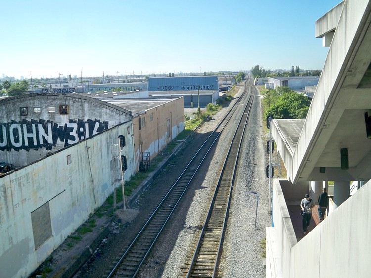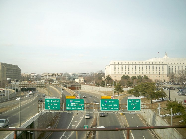 Поезд вступил в официальную черту города Вашингтона. Пересечение с автодорогами. Вид на север.