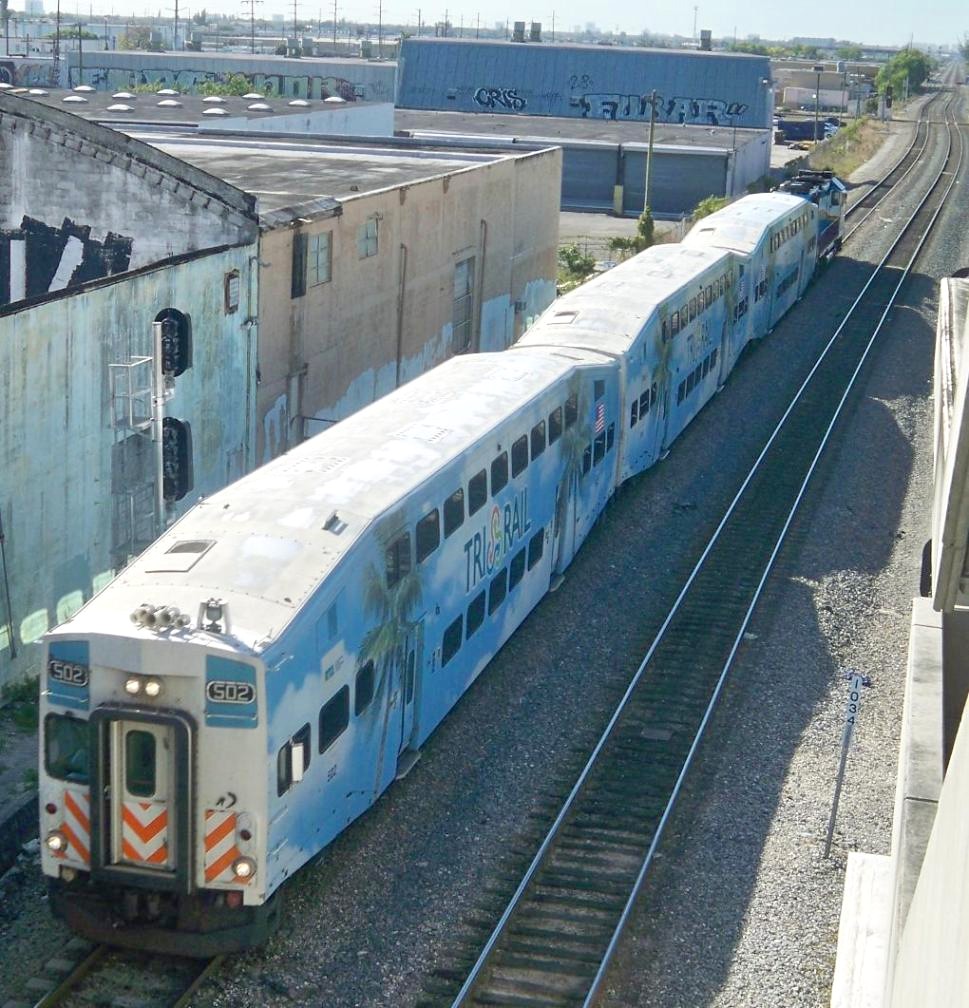 Составность пригородных поездов — тепловоз и вагоны, часто двухэтажные. Хвостовой вагон имеет кабину управления. В направлении «из города» локомотив тянет поезд, в обратную сторону — толкает. Это называется push-pull operation. Подобная схема распространена не только в США, но и во многих странах Западной Европы.