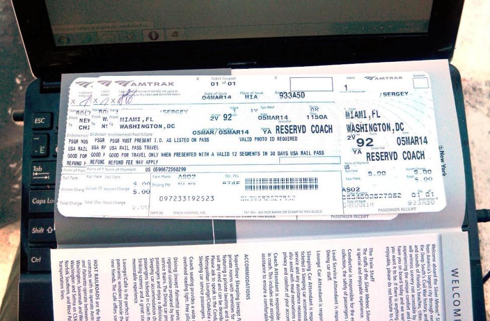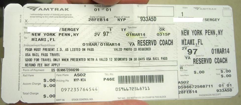 В итоге я получил ещё четыре билета, в дополнение к одному, полученному в Нью-Йорке, и трём, полученным в Майами. На этот раз — в точности так, как запрашивал, все желаемые мной поезда были доступны.