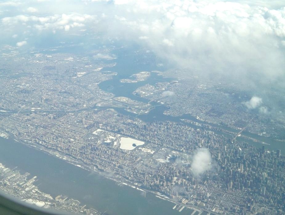 Можно считать, что мне повезло: заход на посадку происходил не кратчайшим путём, а с разворотом над океаном. Благодаря этому Нью-Йорк удалось неплохо осмотреть с высоты. Это намного интереснее, чем рассматривать те же места на спутниковых снимках!