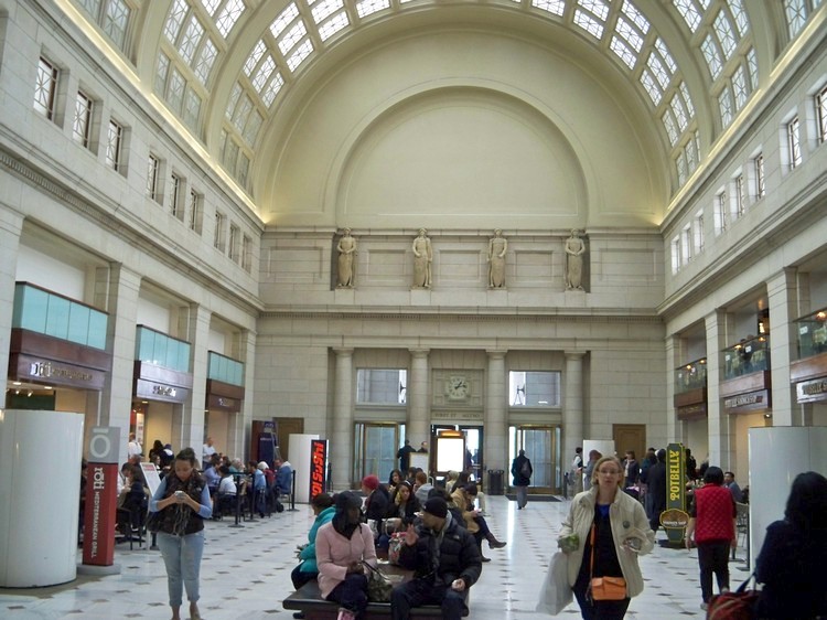 Вашингтонский вокзал впечатлил и обрадовал меня больше, чем какой-либо ещё из увиденных до этого. Это действительно грандиозный и достойный столицы вокзал! Пенсильванский вокзал в Нью-Йорке, хоть и удобен для пассажиров, является подземным и архитектурного облика почти не имеет. Наземная его часть — жалкий «сарай», к тому же частью вокзала она на самом деле не является.