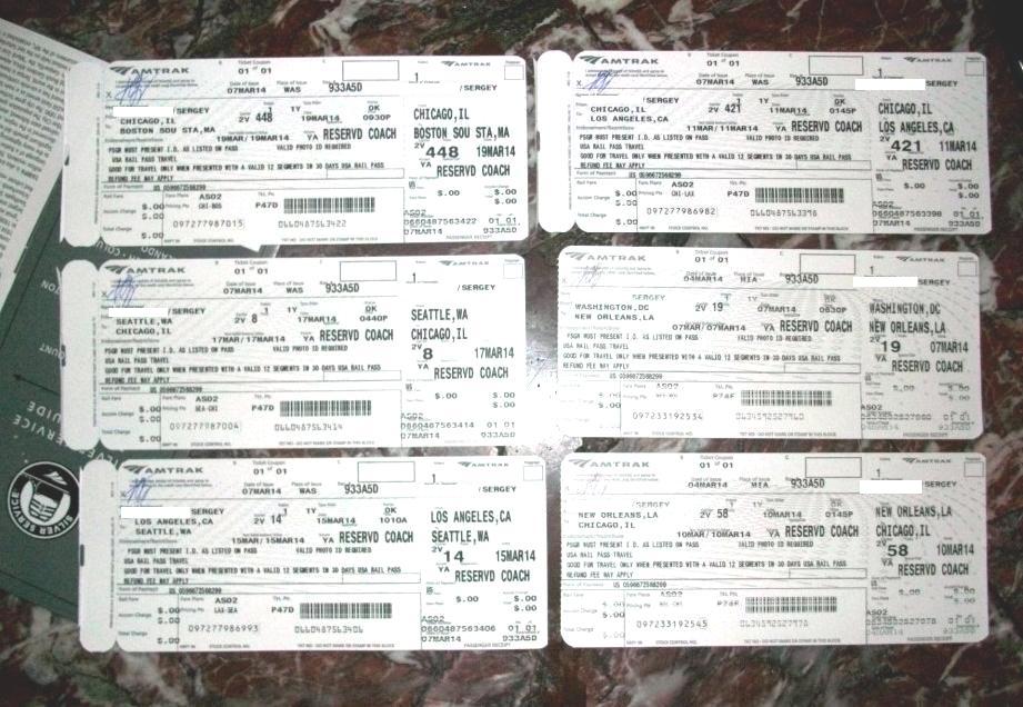 Полученные билеты: Чикаго — Лос-Анджелес через Сан-Антонио. Это трое суток в сидячем вагоне — максимальный по дальности поезд в США. Лос-Анджелес — Сиэтл. Сиэтл — Чикаго. Чикаго — Бостон.
