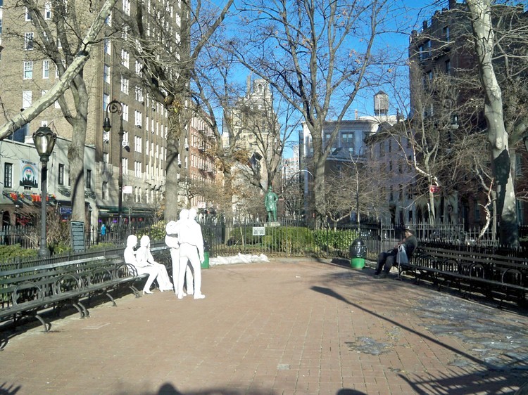 Внезапно малоэтажная застройка переходит в скопление высотных зданий, внутрь которого «вставлен» парк прямоугольных очертаний с замёрзшим озером в середине. Это Манхэттен!