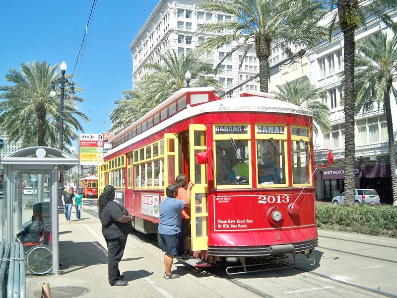 Первое впечатление от Нового Орлеана — хорошее: тепло, красиво и цивилизованно. Несмотря на поздний час, рядом с вокзалом проехал трамвай старинного облика.