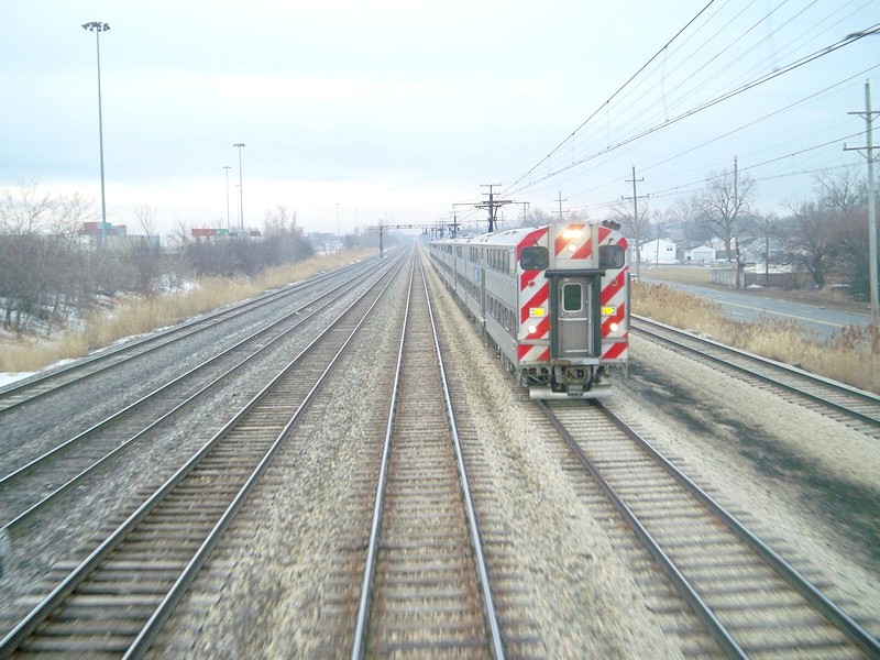 Вид на восток, в сторону Чикаго. Раздельный пункт Cameron Junction. Время 18:01.