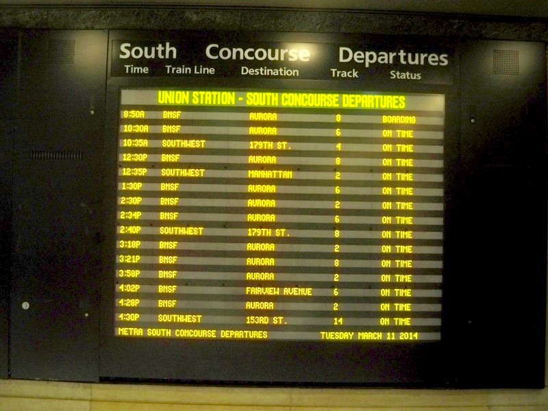 Вокзал Chicago Union. Через выход «F» ведётся посадка на поезд №3 «Southwest Chief»
