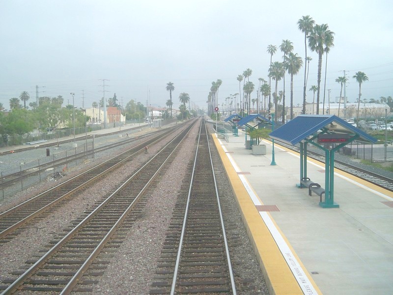 Станция Oxnard, 107 километров от Los Angeles Union. Вид в сторону Лос-Анджелеса. Немногим дальше