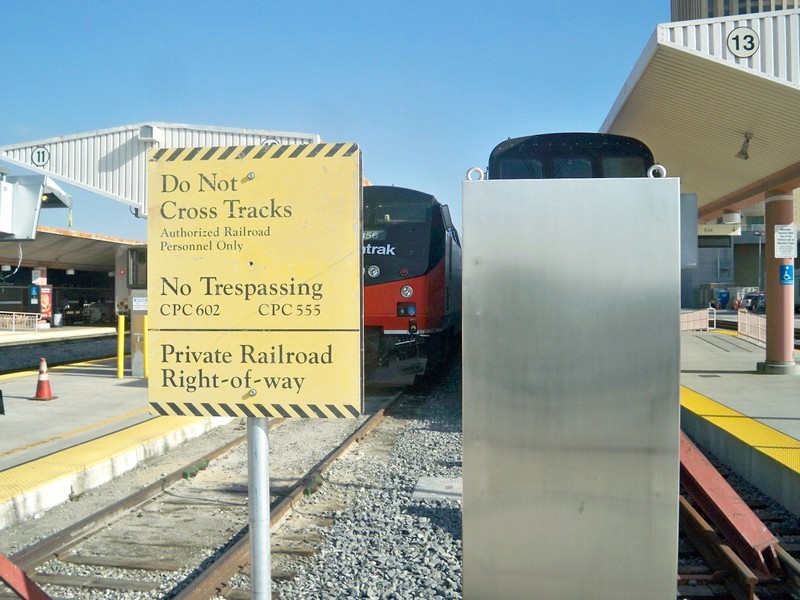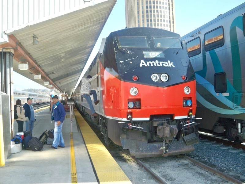 Поезд №14 «Coast Starlight» сообщением Лос-Анджелес — Сиэтл отправится в 10:10 с 10-го пути. Удалось сделать фотографии тепловоза. На юге Америки порядки в целом менее строгие, чем на севере. Пройтись по платформе здесь проще.