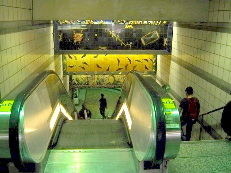 Проезжаю и фотографирую «Красную» линию метро — как основную часть, так и ответвление, официально именуемое «Пурпурной линией». Линия полностью подземная, так что это можно делать и ночью.