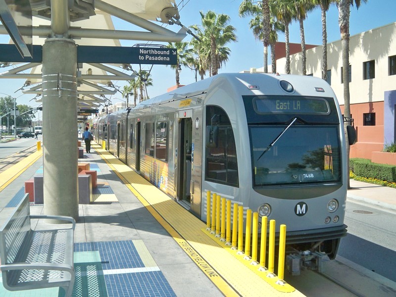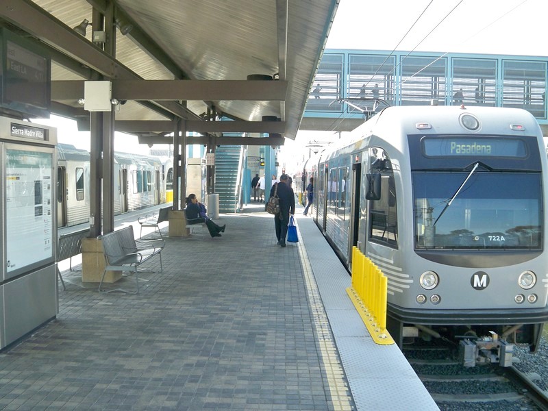 От станции East LA Civic Center — до противоположной конечной станции Sierra Madre Villa. На маршрутоуказателях поездов этот пункт значится как Pasadena.