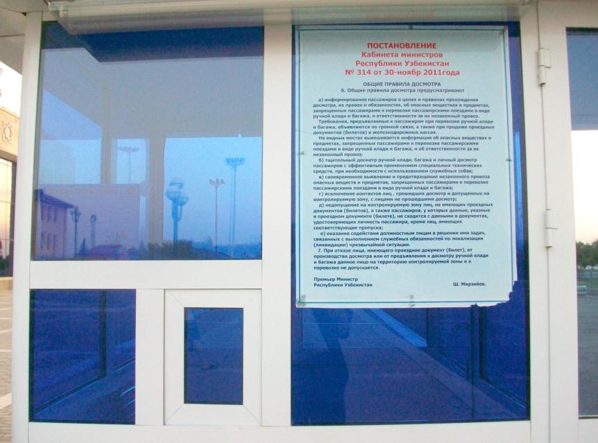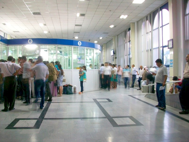 При входе отсутствует не только грубый «шмон», как в Узбекистане — отсутствуют и привычные для России «рамки» и сканеры для вещей. Светло и просторно, нет толпы и суматохи.