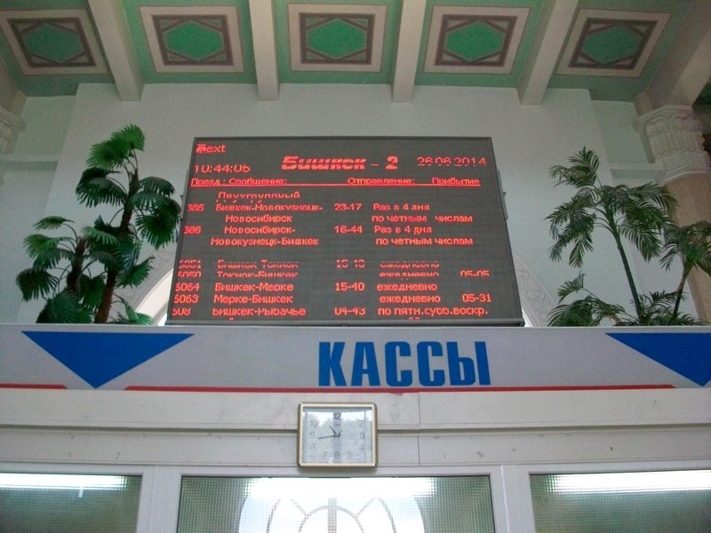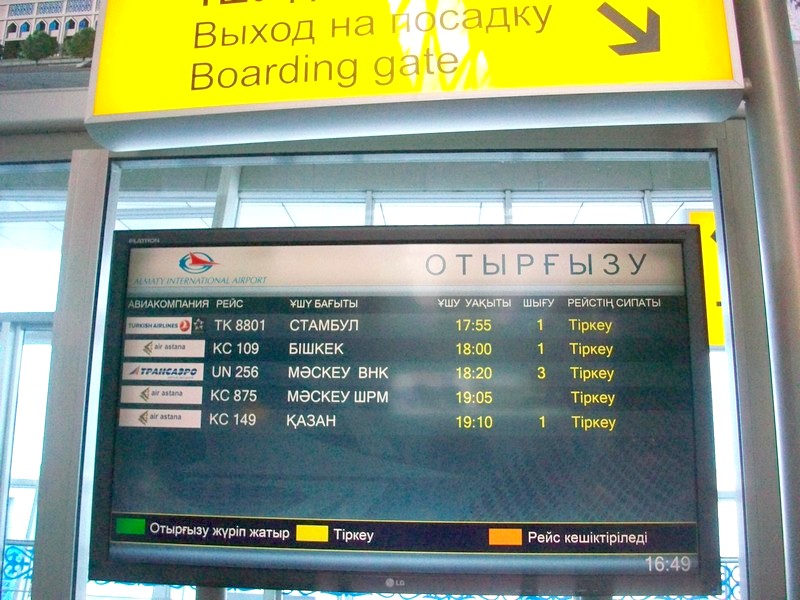 Табло в аэропорту Алма-Ата. Есть рейсы на Бишкек, хотя это — чуть более двухсот километров над асфальтированной